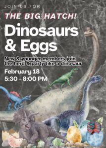 The Big Hatch: Dinos Meet the Eggs is a lively, cross-generation happy hour designed to bring our longtime “Dinosaur” members together with our newer “Eggs.” With live music setting the tone, this fun and casual evening is all about mixing, mingling, sharing stories, and strengthening the bonds that make our club feel like family. Come enjoy great company, good vibes, and a night that celebrates the past, present, and future of DIYC—all in one place.
